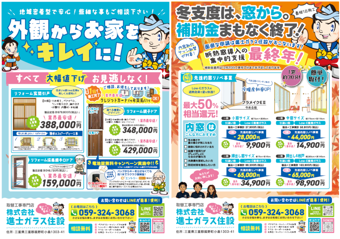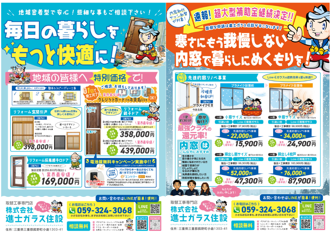 進士ガラス住設は、菰野町、四日市市、いなべ市、桑名市を中心に平成24年から実績を積み、地域に密着した営業活動を行っているため、スピーディな対応が自慢です。